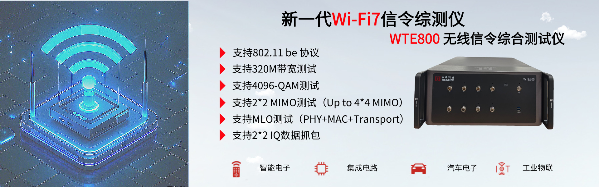 WTE800無線信令綜合測試儀(以下簡稱“WTE800”)是由深圳市中承科技有限公司自主研發和生產,可用于Wi-Fi設備在研發、生產、認證等環節測試的多功能綜合測試儀,通過配置客戶端或AP端參數,真實建立Wi-Fi網絡呼叫連接,自動實現被測件的各項射頻與協議性能指標精準測試。